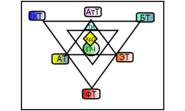 ФТ – Физическое Тело; ЭТ – Эфирное Тело; АТ – Астральное Тело; МТ – Ментальное Тело; КТ – Каузальное Тело;
