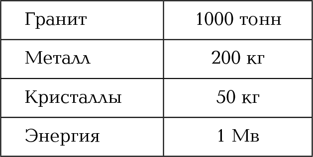– Небольшие. 1000 тонн гранита, 200 кило металла, 50 кило кристаллов. Правда, энергии уйдет 1 Мв. Что решаешь, Шад?