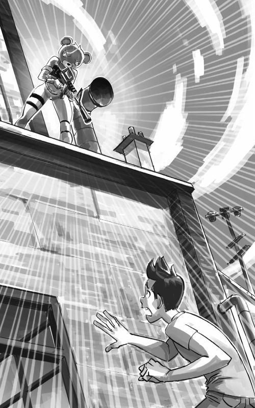 Пули летят в меня – одна слева, одна справа, две прямо над головой. Я ныряю вниз, уворачиваясь от выстрелов, и понимаю, что траектория моего спуска изменилась. Ага, значит, этой штукой можно управлять. Ай! Кажется, в меня попали. Я чувствую усталость, как в прошлые разы, когда терял сознание. Скорее… поворот, еще один, ухожу в сторону. Стрельба становится интенсивнее, и я делаю все возможное, чтобы оказаться подальше от самого пекла. Переворачиваюсь в воздухе, чтобы уклониться от пуль, и двигаюсь с изяществом пластикового пакета, попавшего в воздушный поток. Наконец я приземляюсь в нескольких метрах от гаража. Железные ворота наполовину подняты. Возможно, удастся проскользнуть внутрь. Я пытаюсь сделать это, но в глазах темнеет… занавес.