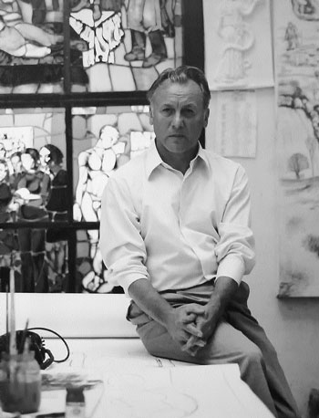 В квартире народного художника СССР Василия Бородая мне поручили ответственное дело: держать в наклонном положении специальный зонтик, в который должна была выстрелить печально знакомая мне осветительная лампа. По задумке деда, только такой отраженный свет правильно подсветит с задней стороны золотисто-красные витражи. На их фоне пожелал сниматься их автор – Василий Бородай. Я с блеском выполнил свою работу и потом много лет показывал родным и знакомым дедовскую картину, приговаривая: «А вот там стою я и держу зонтик».