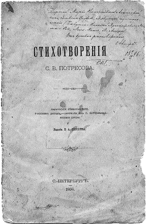 Тогда Сергей Викторович поступил с изданием так, как, по его мнению, делали настоящие поэты: «…я уничтожал потом свою книгу везде, где ее находил. Последний эпизод этого рода произошел уже в Париже»[4]. Тот «парижский» экземпляр он не уничтожил, впрочем, как и тот, который с десятком цензурных штемпелей почти через полвека после смерти деда попал ко мне как щедрый дар молодого ростовского журналиста. По впечатлению Потресова, Майков отнесся к его книге снисходительно, указав на отдельные недостатки, и призывал деда бросить журналистику. Потресов его тогда не послушал и не жалел. «Из моей поэзии, – писал он в Париже, – осталось только одно стихотворение, написанное мною в девятнадцатилетнем возрасте, “Яблоня”, положенная шесть раз на музыку. И до сих пор еще я иногда слышу, как люди декламируют и мелодекламируют: