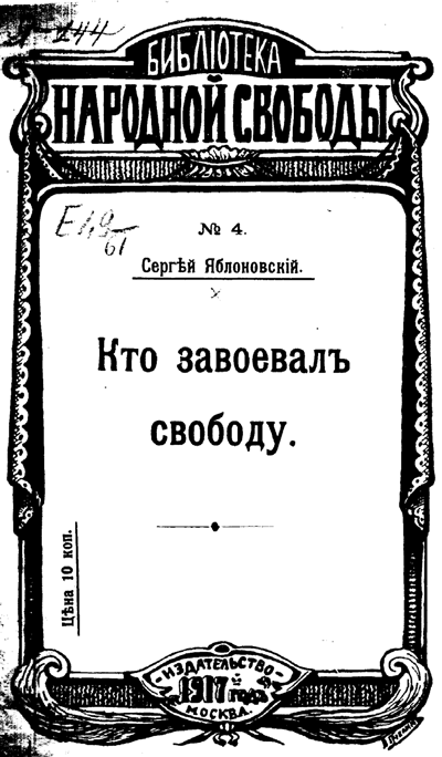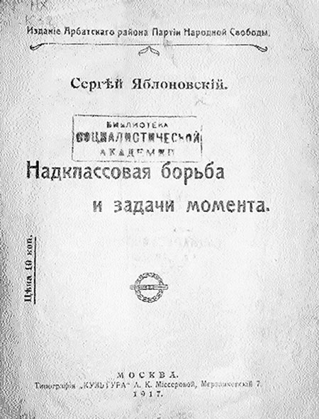 С. Яблоновский «Надклассовая борьба и задачи момента», 1917