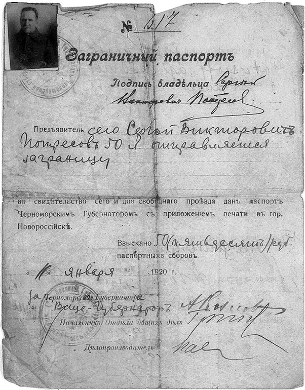 Заграничный паспорт С. В. Потресова (Яблоновского), 1920