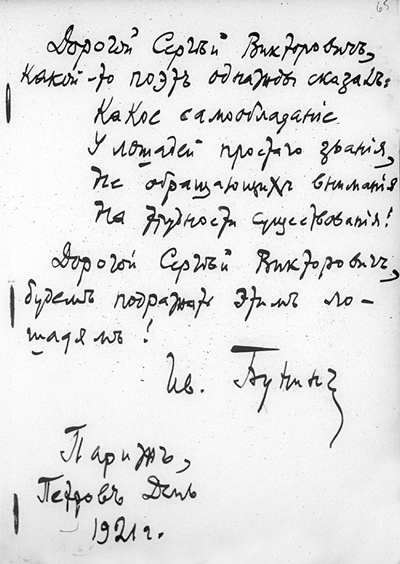 Пожелание И. А. Бунина в альбоме С. Яблоновского, 1921