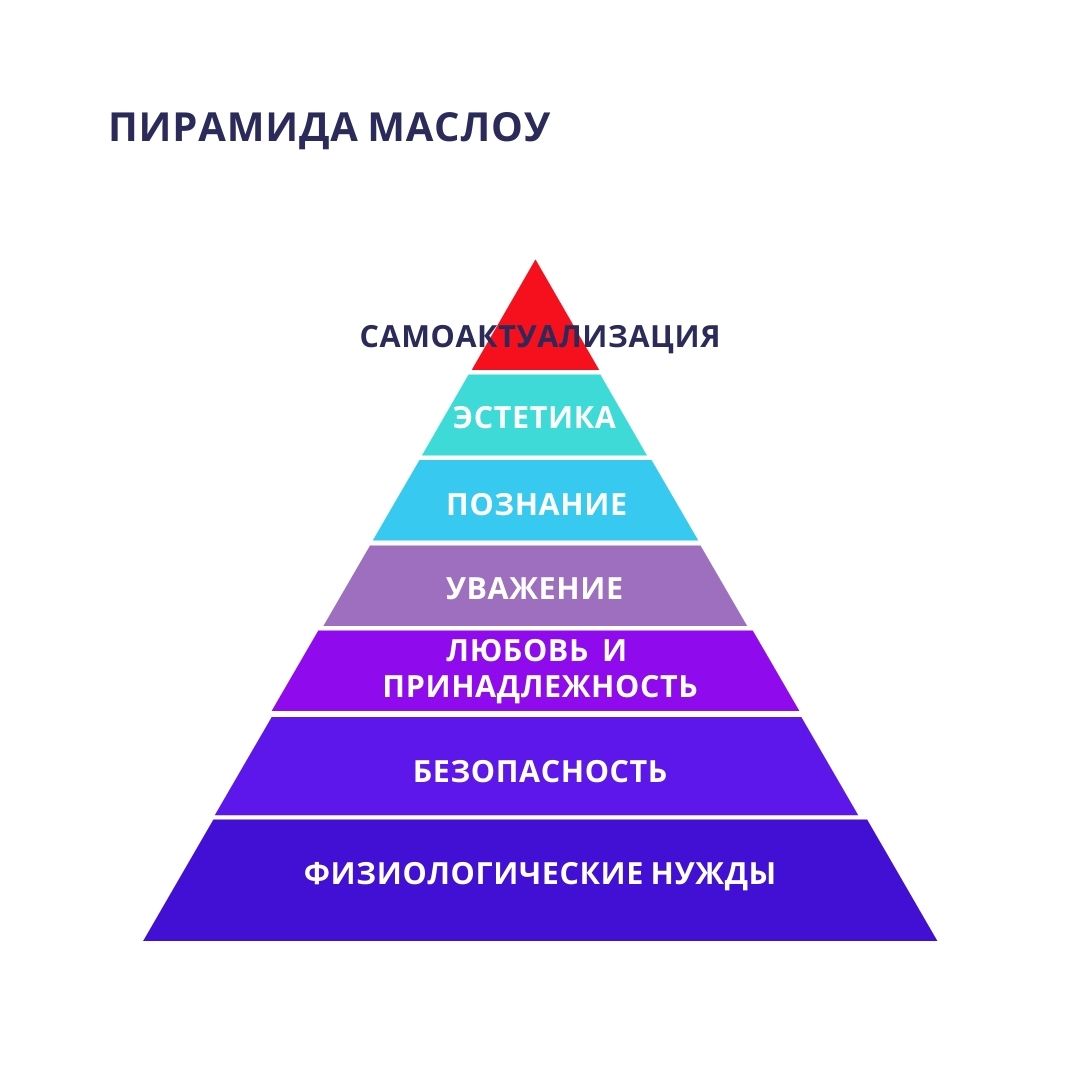 В модели Маслоу выделены различные виды потребностей человека и их взаимосвязь с уровнем его интеллектуального и социального развития: чем человек более развит, тем сложнее и специфичнее его запросы. Следуя этой пирамиде, используемой в абсолютно разных отраслях (особенно ее любят маркетологи), становится очевидно, что после того, как человек закрывает потребности на более низком уровне, его запросы становятся все более изощренными. Прежде всего необходимо удовлетворить физиологические потребности, потом обеспечить безопасность, любовь и принятие, а вот потом появляется необходимость в получении уважения, глубинных знаний, эстетического наслаждения и духовного роста. Три верхних уровня выражают потребность в самовыражении (самоактуализации).