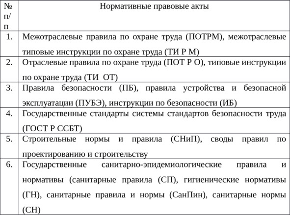 – – перечень норм, призванных обеспечить выполнение требований охраны труда как работниками, занятыми на своих рабочих местах, так и работодателями при их организации (ст. 209 ТК РФ) (Приказ Минтруда России от 29.10.2021 №774н «Об утверждении общих требований к организации безопасного рабочего места»); Общие требования к организации рабочего места