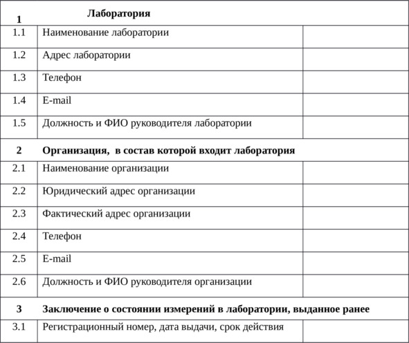 Рекомендации по заполнению формы 1. Наименование лаборатории должно включать ее функциональное назначение (например, лаборатория анализа качества воды, строительная испытательная лаборатория, металлографическая лаборатория), но не ограничиваться одним словом «лаборатория». Если лаборатория включает в свой состав ряд подразделений, расположенных на нескольких площадках, причем каждая имеет свой адрес, то необходимо указать все адреса площадок, на которых проводится оценка состояния измерений.