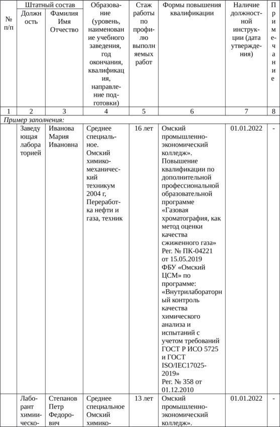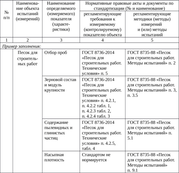Это перечень нормативных документов, регламентирующих требования к выполняемым в лаборатории видам работ, испытуемым (анализируемым) объектам, измеряемым (контролируемым) параметрам этих объектов. Форма 2 должна содержать следующие сведения:
