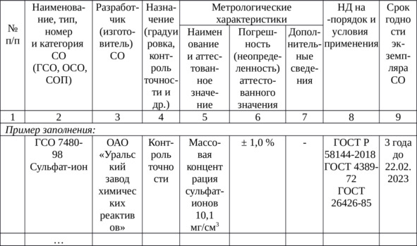 Это данные о применяемых в лаборатории эталонах, средствах измерений (далее – СИ) и их метрологическому подтверждению (поверке, калибровке). Форма 3 должна содержать следующие сведения: