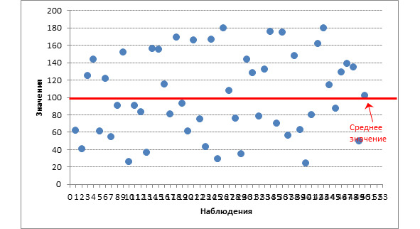 Рисунок 4.5 —Пример выборки с коэффициентом вариации 45%