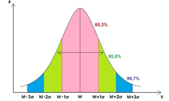 Математически, случайная погрешность может быть выражена не только величиной СКО, но и коэффициентом вариации (далее – CV). СКО дает абсолютную оценку меры разброса, поэтому, чтобы понять, насколько разброс велик относительно самих значений, т.е. независимо от их масштаба, требуется относительный показатель – коэффициент вариации.