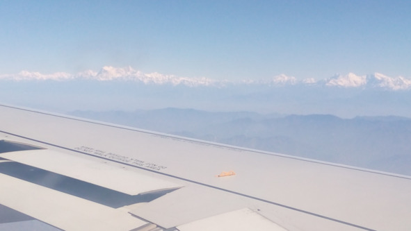 Но через четыре часа за иллюминатором рассвело, и мир нам явил высоченные заснеженные вершины, мы ахнули и проснулись. И снова ахнули. Гималаи! За ними! За ними мы ехали. Про них! Про них мечтали. Угадать, которая Эверест, мы не могли и только всё щёлкали и щёлкали фотоаппаратами мобильников в иллюминатор…