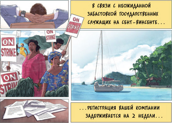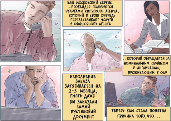 Если вам вдруг покажется, что это слишком долго, вспомните, пожалуйста, что оффшорные юрисдикции в большинстве своем находятся за много часовых поясов от места работы ваших московских консультантов, а мгновенную телепортацию документов на расстояние пока еще, к сожалению, не изобрели.