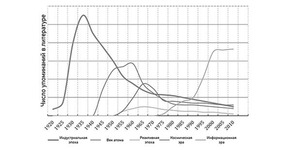Рисунок 1.4. Частота упоминания основных «эпох» в популярной литературе (источник: Google)