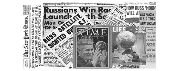 Четвертого октября 1957 года СССР вывел на низкую эллиптическую околоземную орбиту алюминиевую сферу диаметром 58 сантиметров под официальным названием «Спутник-1». Отметим, что в русском языке слово «спутник», помимо небесного тела значительно меньшей массы, обращающегося по орбите вокруг планеты, может обозначать попутчика. В 1955 году президент США Дуайт Эйзенхауэр объявил о намерении Соединенных Штатов запустить искусственный спутник земли, однако Советский Союз опередил конкурентов, застав Запад врасплох и вызвав бурю дебатов о причинах и потенциальных последствиях отставания.