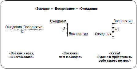 Эмоции и впечатления, которые останутся у аудитории, можно выразить формулой: эмоции = восприятие – ожидания.