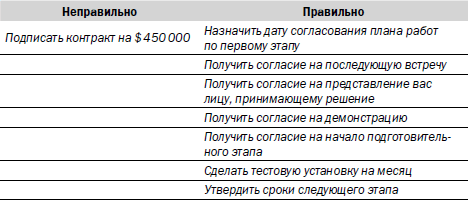 Продающая презентация не «есть наш последний и решительный бой». Полезнее думать о ней не как о разовом мероприятии, а скорее как об одном из этапов корпоративной продажи. Корпоративные продажи могут занимать недели, месяцы и годы. Зачастую обстоятельства складываются так, что вы вынуждены двигаться поэтапно, шаг за шагом. Это необходимая последовательность действий – каждой презентацией или встречей с клиентом вы завоевываете право продвинуться вперед. И только если то, о чем вы говорите, имеет ценность в глазах клиента. В противном случае вас вежливо просят закруглиться, ссылаясь на занятость и обещая перезвонить. Ага, уже бегут.