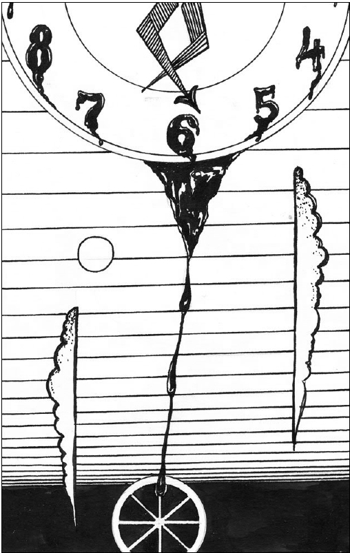 Крыши мокнут,Крыши сохнут,Крыши — серые полотна,Нарисованные двери,Нарисованные окна.В окнах вечер,Чёт и нечет:Руки, жесты, тени, речи…Нарисованные люди,Нарисованные встречи.Краски — страсти,Краски — сласти,В абрисе червовой масти.Нарисованного сердцаНарисованное счастье.«Неужто так и присно и вовеки…»