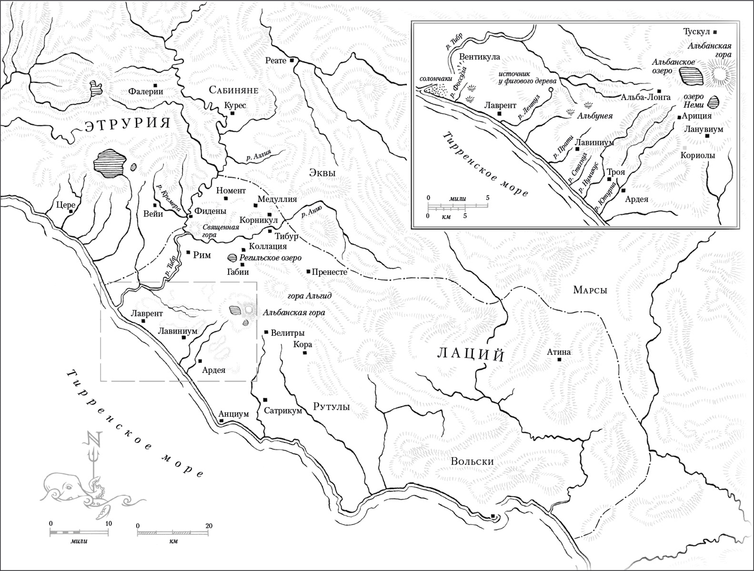 Но в годы моего девичества описанный моим поэтом огромный город будущего был всего лишь жалким маленьким селением на склоне каменистого холма, заросшего густым кустарником, где было множество пещер. Я однажды побывала там с отцом – туда при западном ветре по реке примерно день пути. Тамошний правитель Эвандр{8}, наш союзник, когда-то бежал сюда из Греции, но и здесь у него тоже возникли большие неприятности – он убил гостя. У него, правда, имелись на то серьезные основания, но таких вещей наш народ не прощает и не забывает. Так что Эвандр был благодарен моему отцу за покровительство и благосклонность и очень старался развлечь нас, своих гостей, но жил он куда беднее многих наших состоятельных крестьян{9}. А Паллантеум представлял собой маленькую крепость, окруженную темным частоколом и пристроившуюся в тени деревьев между широкой желтой рекой и лесистыми холмами. Греки, разумеется, устроили в нашу честь пир, забив быка и оленя, но еду подавали как-то очень странно: мы должны были лежать на скамьях у маленьких столиков, а не сидеть все вместе за одним длинным столом. Так было принято у греков. И они не ставили на стол священную соль и жертвенную пищу. И это в течение всего пира не давало мне покоя.