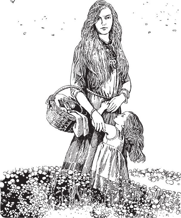 Детей давно уже отослали на улицу, и в доме царила тишина. Девочка без сознания лежала на постели Ларк. Местная ведьма Айви, по прозвищу Плющ, смазала менее страшные ожоги мазью из волшебных орехов и иных целебных плодов и растений, но даже не прикоснулась ни к правой щеке девочки, ни к ее правой руке: здесь обуглившаяся плоть была сожжена до кости. Над кроватью Айви начертала руну Пирр – вот и все, что было в ее силах.