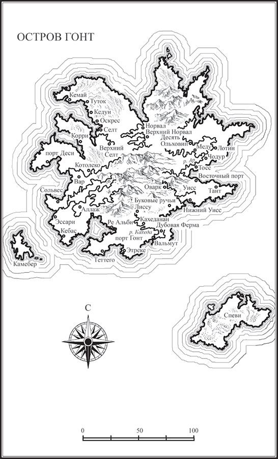 Из кухни пришла ведьма Айви, нахмурившись при виде Гохи. Хотя вдова никогда не пользовалась ни заклятиями, ни иным волшебством, ходили слухи, что сразу после прибытия на Гонт она поселилась в Ре Альби и стала ученицей мага Огиона; а еще говорили, что она хорошо знакома с самим Верховным Магом Земноморья, что родом с острова Гонт, а значит, наверняка обладает каким-то нездешним и непростым колдовским могуществом. Сгорая от ревности, ведьма подошла к кровати и занялась девочкой, потом смешала на плоской тарелке какие-то порошки, поднесла смесь к огню, и комната наполнилась вонючим дымом, ведьма же стала шептать исцеляющие заклятия, вновь и вновь повторяя их. Дым вызвал у девочки удушливый кашель; она приподнялась в постели, хватая ртом воздух и вся дрожа. Потом стала делать какие-то короткие странные вдохи, будто захлебывалась. Ее уцелевший глаз смотрел, казалось, прямо на Гоху.