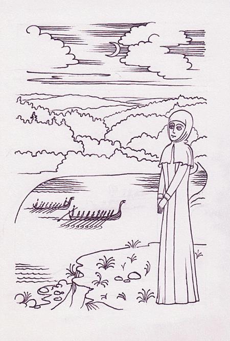 Она остановилась на берегу, желая узнать, кто это путешествует ночью. На сердце у нее стала тревожно.