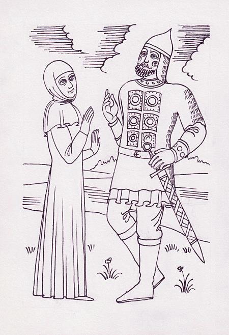 При бледном свете девушка увидела, что это был довольно молодой человек с небольшой бородкой, в кольчуге, и двинулась ему навстречу.