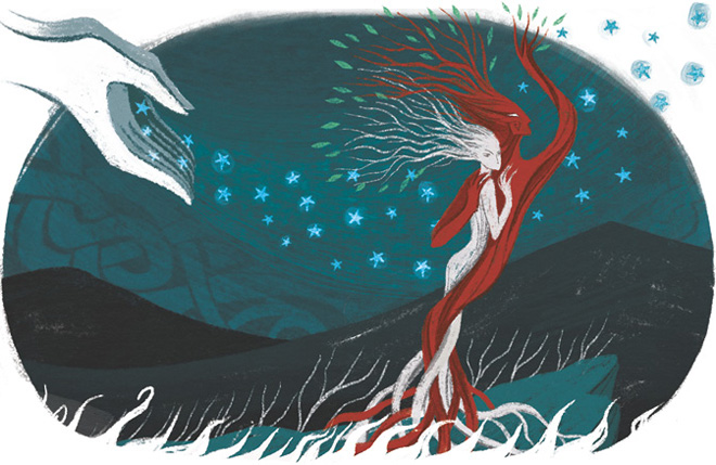 Когда Один, Вили и Ве создавали Мидгард, они собрали жизнетворные искры Муспельхейма и бросили их в зияющую пустоту Гиннунгагап. В тот миг бездны не стало, а из нее ввысь устремился исполинский ясень Иггдрасиль. Могучие ветви древа распростерлись над всем живущим и даже пронзили небо.