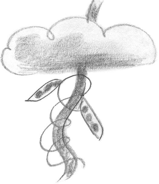 When he woke up, the room looked so funny. The sun was shining into part of it, and all the rest[68] was quite dark and shady. So Jack jumped up and dressed himself and went to the window. And what do you think he saw? The beans that his mother threw out of the window into the garden sprang up into a big beanstalk[69] which went up and up and up till it reached the sky. So the man spoke truth!