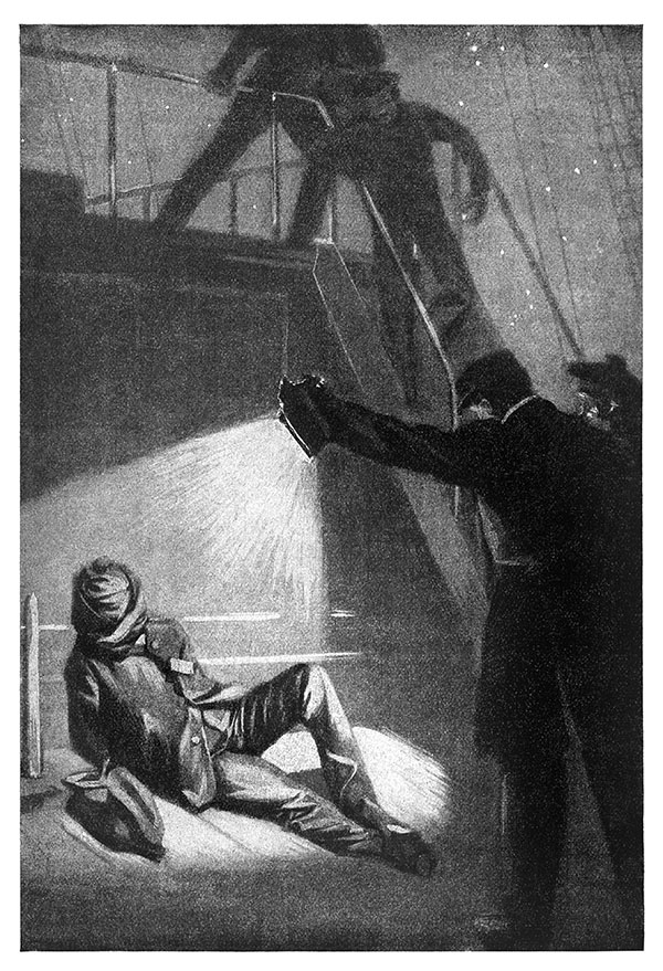 Но в предпоследнюю ночь вахтенный офицер услышал какие-то стоны, доносившиеся из самого темного уголка палубы. Он подошел. Там лежал человек, голова и лицо у него были замотаны толстым серым шарфом, запястья связаны тонкой веревкой.