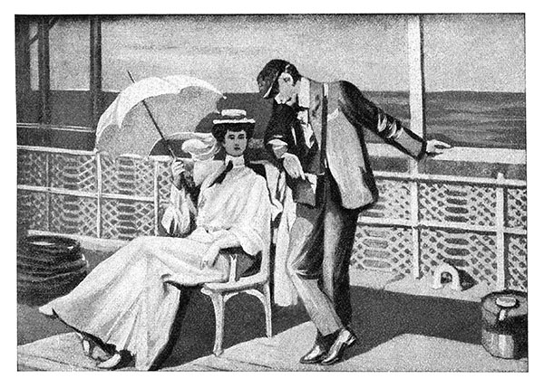 Он как раз находился в числе воздыхателей, окружавших мисс Нелли, когда она обратилась ко мне с расспросами. Мы все удобно расположились на палубе в креслах-качалках. После вчерашней грозы небо очистилось. Стояла изумительная погода.