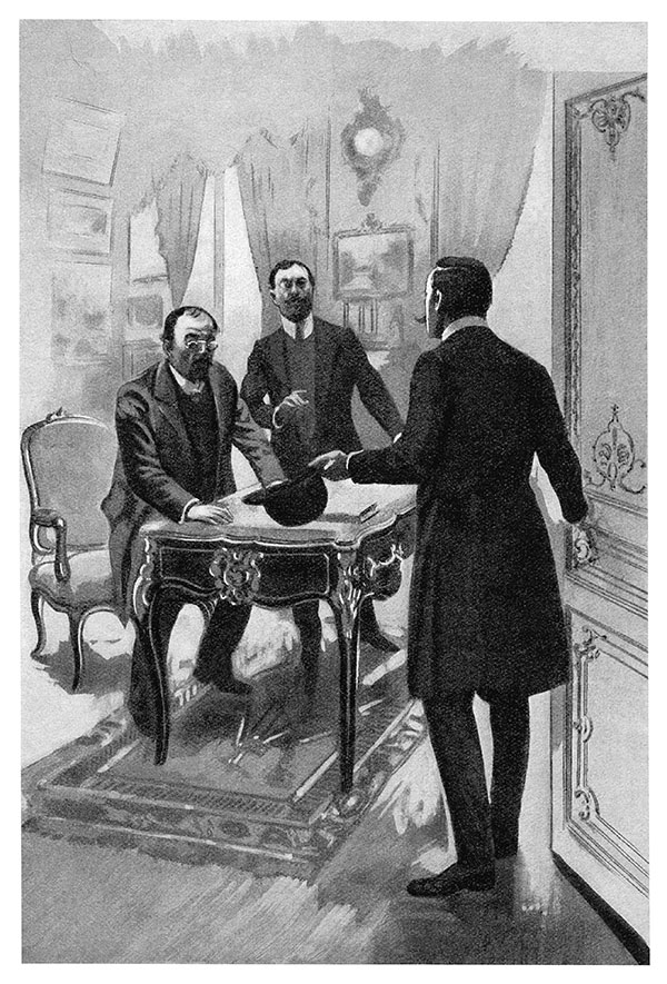 Господин Жербуа невольно рванулся с места. Теперь, когда дочь была ему возвращена, к нему вернулось чувство реальности. Арест противника означал для него получение полумиллиона. Инстинктивно он сделал шаг… Будто невзначай Люпен оказался на его пути.