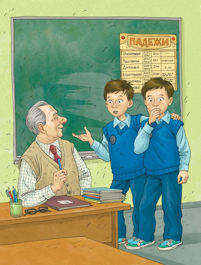 – Братцы-кролики, вы зачем местами поменялись? – спросил Виктор Егорович, проходя по классу. – Влад обычно слева сидит. А теперь слева Стас. Пересядьте обратно, мне так привычнее.
