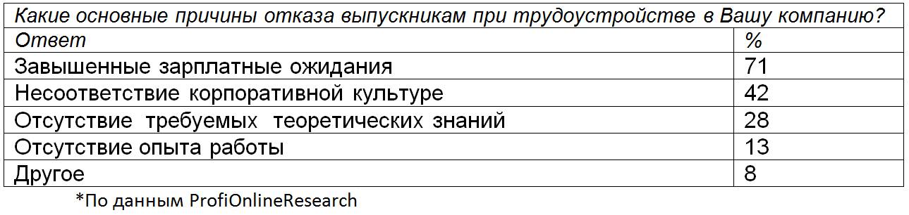Расходы предприятия на зарплату ограничены (ограниченность фонда оплаты труда). Видя существующий «потолок», человек либо перестает интенсивно работать, либо раздражается, либо начинает подрабатывать на стороне. В любом случае его потенциал организацией полностью не используется. Если цель сотрудников – количество зарабатываемых денег, такие сотрудники в любой момент готовы уйти. Владелец может постоянно увеличивать заработную плату, но сотрудник знает, что как только он найдет работу ещё на несколько десяткой тысяч рублей больше – он уйдет туда. С другой стороны, «монетаристский настрой», желание получить «все и сразу», особенно свойственные современным молодым людям, провоцируют сложности при трудоустройстве. Это подтверждают ответы на вопрос о причинах отказов в работе выпускникам. Большинство работодателей(71%) отмечают, что отказывают молодежи в основном из-за завышенных зарплатных ожиданий, а не из-за отсутствия должного опыта и знаний.