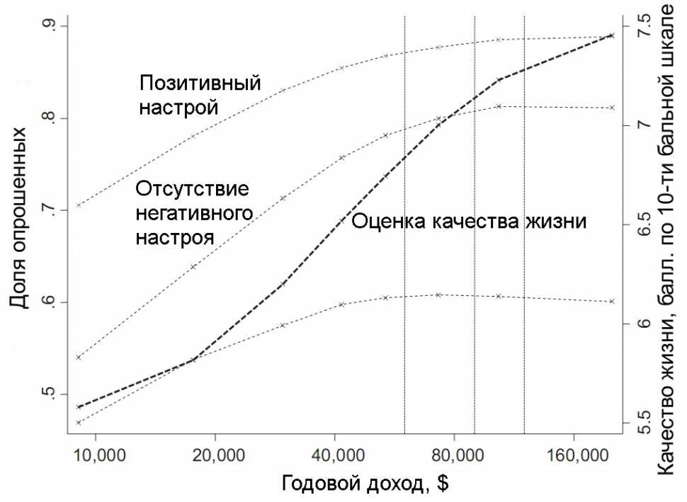 «Не в деньгах счастье» – об этом свидетельствуют и графики Дитона и Канемана, по которым видно, что повышение уровня жизни в стране вовсе не гарантирует счастливого общества: