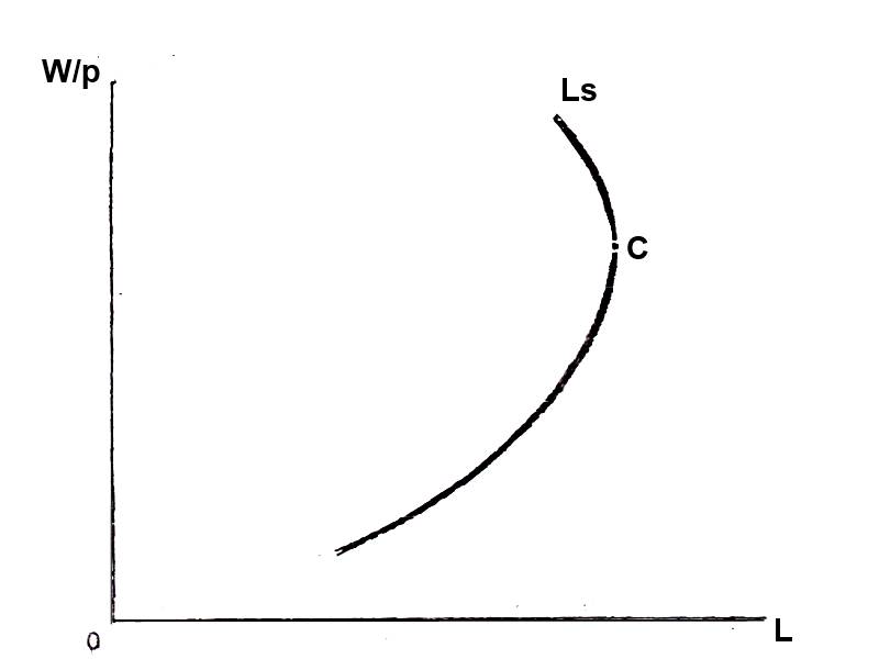По логике монетаристов, кривая предложения труда при росте реальной заработной платы должна всегда иметь положительный наклон. Но при этом не учитывается, что одним из благ в общей потребительской корзине индивида, определяющей значение его функции полезности, является свободное время.