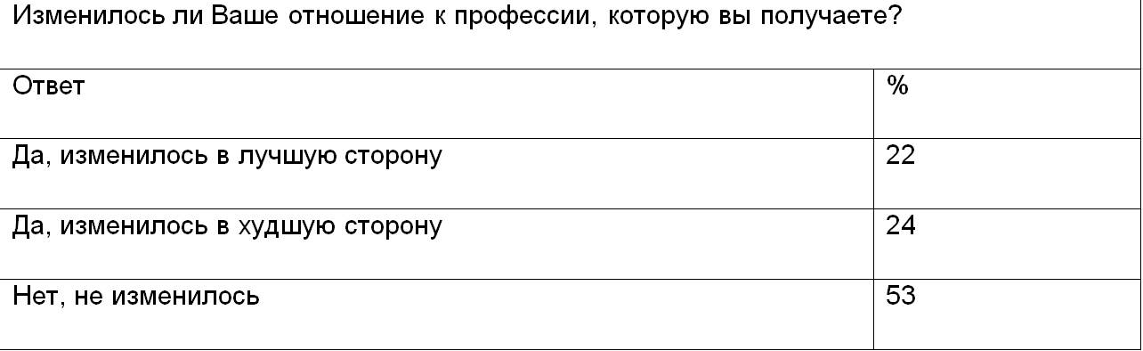 Как показывает опыт, только к 4-5 курсу студенты начинают реально планировать свое профессиональное будущее. При этом оказывается, что профиль образования далеко не всегда определяет профессиональный выбор человека. Это объясняется несколькими причинами. Во-первых, к моменту поступления в ВУЗ у многих выпускников школ отсутствует четкое представление о том, чем именно им хотелось бы заниматься. Выбирая специальность, человек не всегда до конца понимает ее суть и не представляет себе работу, по специальности (часто это касается «престижных», «модных» специальностей). Нередко на выборе той или иной специальности настаивают родители. По факту получается – окончив ВУЗ, человек понимает, что выбрал «не то».