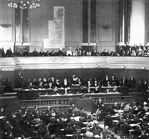 При содействии известного архитектора Оскара Марморека и врача Макса Нордау,[15] более известного успехами в публицистике, нежели в медицине, Герцль организовал созыв Всемирного сионистского конгресса, состоявшегося в августе 1897 года в Базеле. На конгрессе была создана Всемирная сионистская организация и принята ее первая программа, получившая название «Базельской программы», целью которой стало «создание национального дома на земле Израиля». Также на конгрессе был утвержден израильский флаг, несколько отличающийся от современного. Голубые полосы располагались вертикально. Президентом Всемирной сионистской организации был избран Теодор Герцль. В своей речи он сказал: «Сионизм – это возвращение к еврейству еще до возвращения в еврейскую страну… Всякий народ должен помочь себе сам и если он не в состоянии сделать этого‚ то ему вообще нельзя помочь… Пусть повсюду узнают‚ что сионизм есть нравственное‚ законное и гуманное стремление к вековой цели нашего народа».