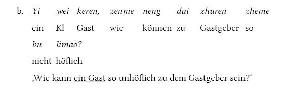 In der chinesischen Literatur werden NPn der nachstehenden Art auch als generisch bezeichnet. Eine solche Verwendung ist aber nur sehr eingeschränkt zugelassen: