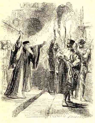 Всё это кипело в котле и охлаждалось кровью павиана. Затем ведьмы прибавили к своему зелью кровь свиньи, пожравшей собственных поросят, – и все время подбрасывали в огонь жир, вытекший из тела повешенного убийцы. Вот какими чарами заклинали колдуньи подземных духов, домогаясь ответов на свои вопросы.