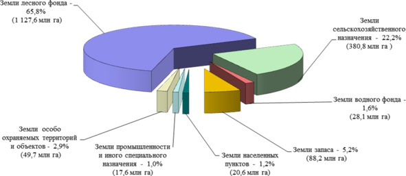 Рисунок 1 Структура земельного фонда РФ по категориям земель