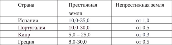 В табл.1 представлены средние цены в докризисные годы (до 2007 г.) на городские земельные участки в европейских странах [63].