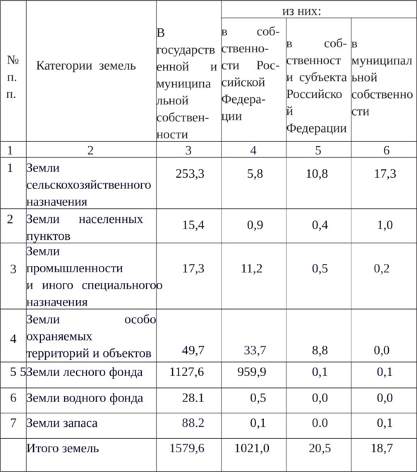 Таблица 2 Сведения о наличии земель государственной и муниципальной собственности и разграничении их на собственность РФ, субъекта РФ и муниципальную собственность (млн. га)