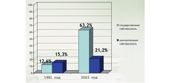 В последние десятилетия большинству городов капиталистических стран, особенно в Европе, пришлось решать острые вопросы жизнеобеспечения, связанные с ростом урбанизации, в условиях жесточайшего дефицита свободных муниципальных земель. Поскольку бюджетные расходы для выкупа и изъятия земельных участков из частной собственности стали угрожающе расти, муниципалитеты стали прекращать практику полного отчуждения своих земель. Существенно возросла и доля земель муниципальной собственности (рис. 2). Так, до начала мирового экономического кризиса, например, в Вашингтоне – уже только 25% территории города было в частной собственности, а в Швейцарии приватизировали лишь 18% городских земель [61,63]. В Хельсинки более 60% городской территории находится в муниципальной собственности. Если в 1981 году в государственной собственности в таких странах как Германия, Франция, Италия, находилось 12,6% городских земель, то уже к 2003 году эта цифра возросла до 63,2%, то есть более чем в пять раз.