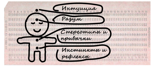 – Нет, это не эрогенные зоны, коллега, – усмехнулся Психолог, – это всё-таки ближе к чакрам. Я называю эти точки ЦУПами – центрами управления психикой человека. С помощью такого рисунка я обычно объясняю своим студентам, из чего, собственно, состоит человеческая психика и как в ней происходит информационный обмен. Так вот. Базовую часть информации мы получаем по наследству от наших родителей на генетическом уровне. В этом отношении люди почти ничем не отличаются от других биологических видов. То есть, основу психики абсолютно любого человека составляют природные инстинкты и рефлексы. Они управляют нами с самого рождения. В этом отношении мы – приматы, тут не поспоришь.