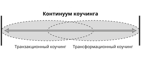 В коучинге можно выделить два основных подхода – транзакционный и трансформационный, – между которыми имеются фундаментальные отличия. Обращаю ваше внимание, что здесь я говорю не о стилях, методологиях или нишах (которые могут быть самыми разными), а о подходах, которые можно поместить на противоположных концах «континуума коучинга»: транзакционный коучинг на одном конце и трансформационный коучинг на другом. Понимание этой разницы существенно, поскольку одной из трудностей коучинга до сих пор является неоднозначность терминологии.