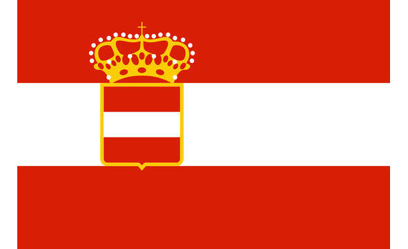 Собственного национального флага в Австрии не было до 1918 г. Штандарт императора был желтого цвета с каймой из черных, желтых, красных и белых треугольников, в центре штандарта изображался малый государственный герб. А государственный флаг империи состоял из горизонтальных полос династических цветов – черной и желтой.