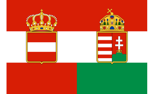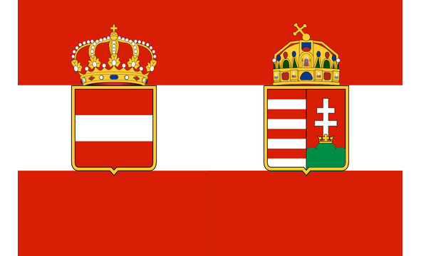 После образования Австро-Венгрии, чтобы показать двуединство австро-венгерской монархии, на государственном флаге в 1915 г. появился еще и венгерский герб (гербы изображались раздельно: ближе к древку герб Австрии, рядом с ним – герб Венгрии), но военно-морской флаг остался без изменений.