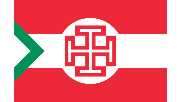 В годы немецкой оккупации (1938—1945) в центре флага в белом круге был белый крест-потент с красной каймой, а у древка – зеленое стропило.