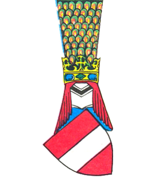 Появление герба «Bindenschild» (серебряный пояс в красном поле), который известен по печатям Бабенбергских герцогов – Леопольда VI и Фридриха II, датируемых 1220—1230 гг., где изображен скачущий на коне рыцарь с трехчастным щитом, приписывается герцогу Леопольду V, который в 1191 г. после битвы с сарацинами при Акре был так залит их кровью, что на его белом одеянии лишь под широким поясом, которым он был перепоясан, осталась белая полоса. Поэтому, гласит легенда, он и принял себе герб этих цветов. Позднее этот герб стал гербом династии Бабенбергов.